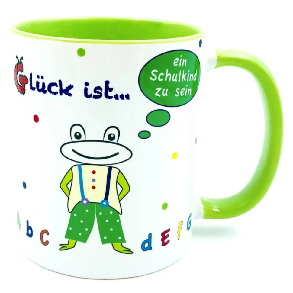 Mit dieser wunderschönen Tasse macht der Schulanfang gleich doppelt Spaß. Mit dem fröhlichen Design, den Buchstaben und dem witzigen Frosch eignet sich diese Tasse zum Schulanfang für Mädchen und Jungen. Gefüllt mit ein paar süßen Leckereien und einen Gutschein für gemeinsame Zeit hast du ein Geschenk zur Einschulung, dass die ABC-Schützen viele Jahre lang auf ihrem Schulweg begleiten wird. Die Tasse kann ganz nach deinen Wünschen individuell personalisiert werden. Wenn du keine Personalisierung möchtest, ist das jedoch auch ohne Weiteres machbar.