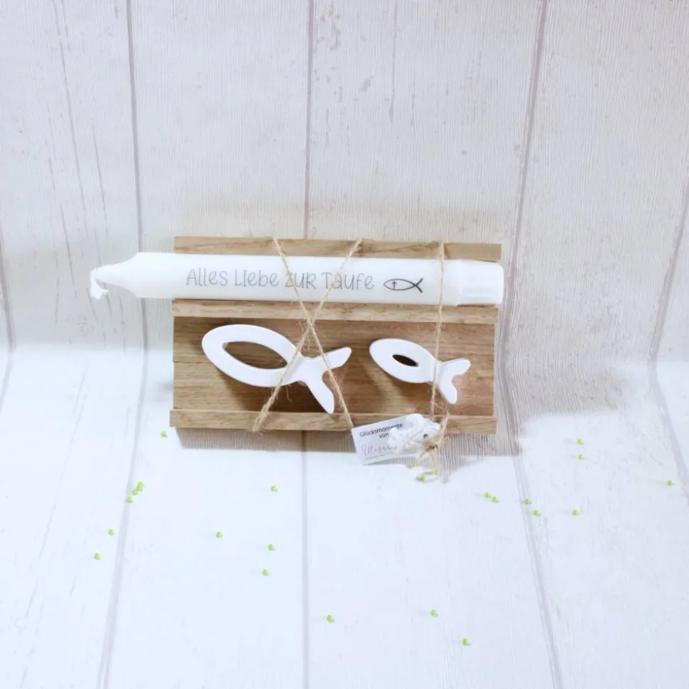 Dieses schöne Geschenkset beinhaltet eine weiße Stabkerze mit einem Schriftzug in Schwarz. Dazu gehört ein Röhrchen aus Glas mit der Aufschrift Wunscherfüller. Hier kannst Du einen Gutschein oder Geldschein schön verschenken. Zum Lieferumfang gehören noch zwei Deko-Element aus Keraflott. Das Ganze ist liebevoll in einer Holverpackung verpackt. Auf Wunsch kann die Kerze auch gegen eine Alternative getauscht werden. Meldet Euch dazu einfach bei mir.
