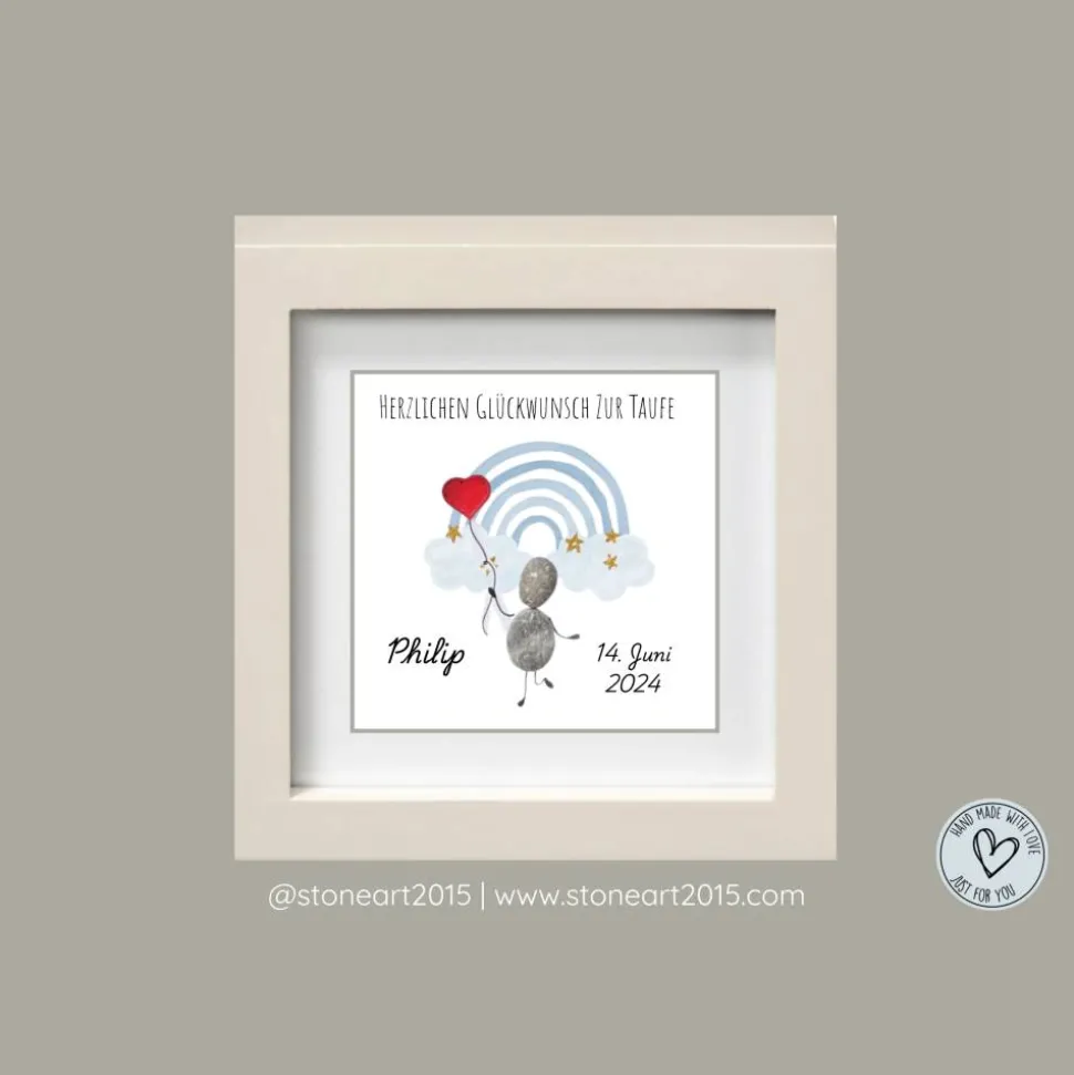 Dieses Natursteinbild ist ein echter Blickfang zur Tauferinnerung und bringt Freude und Wärme ins Kinderzimmer. Ob als Geschenk von Paten, Großeltern oder Eltern – jedes Bild wird nach deiner Bestellung individuell angefertigt und ist somit ein Unikat.