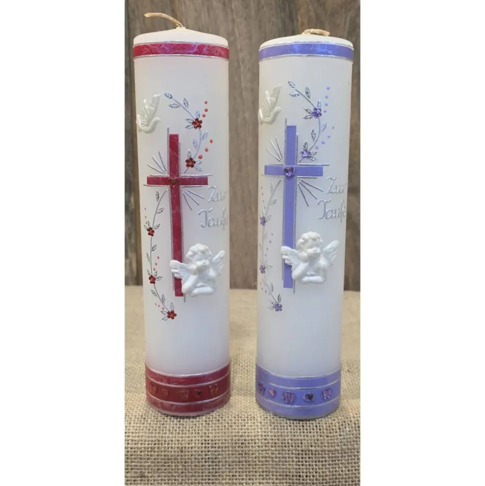 Taufkerze 25×6 Silber-marmoriert – In verschiedenen Farben –