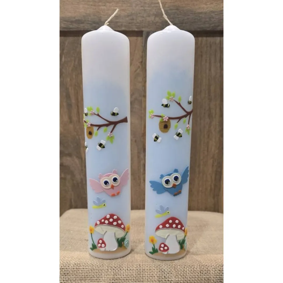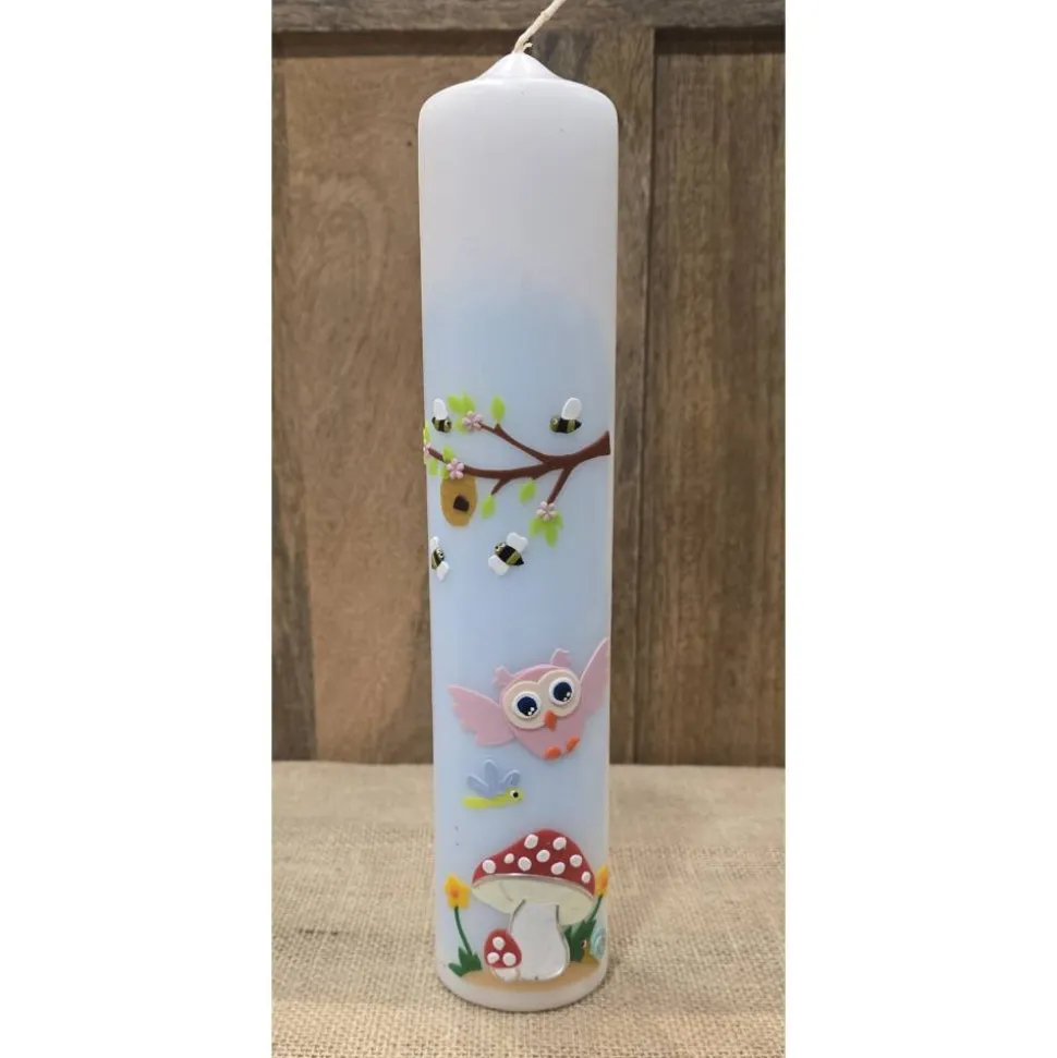 Taufkerze 30×6  – „Eule/Biene“