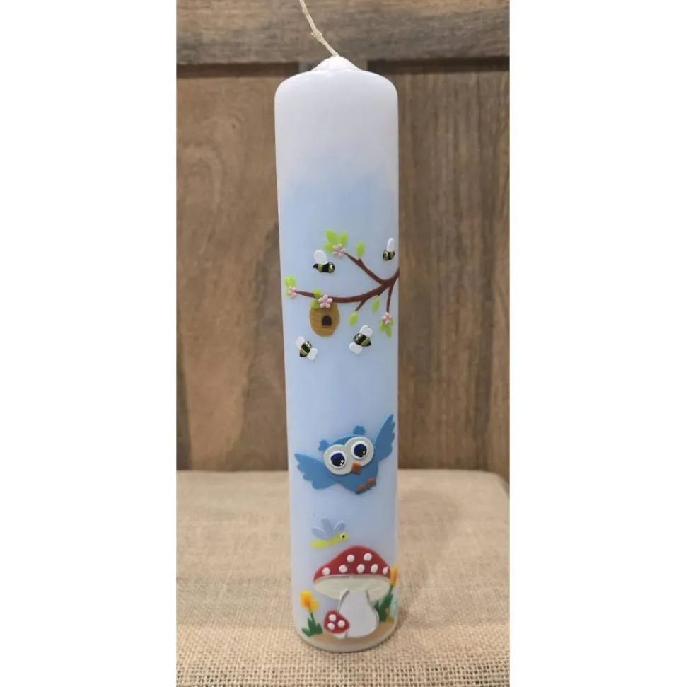 Taufkerze 30x6  - "Eule/Biene"