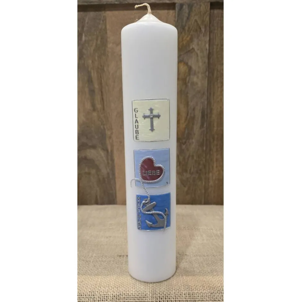 Taufkerze 30×6 – Holografisch – „Glaube-Liebe-Hoffnung“ –