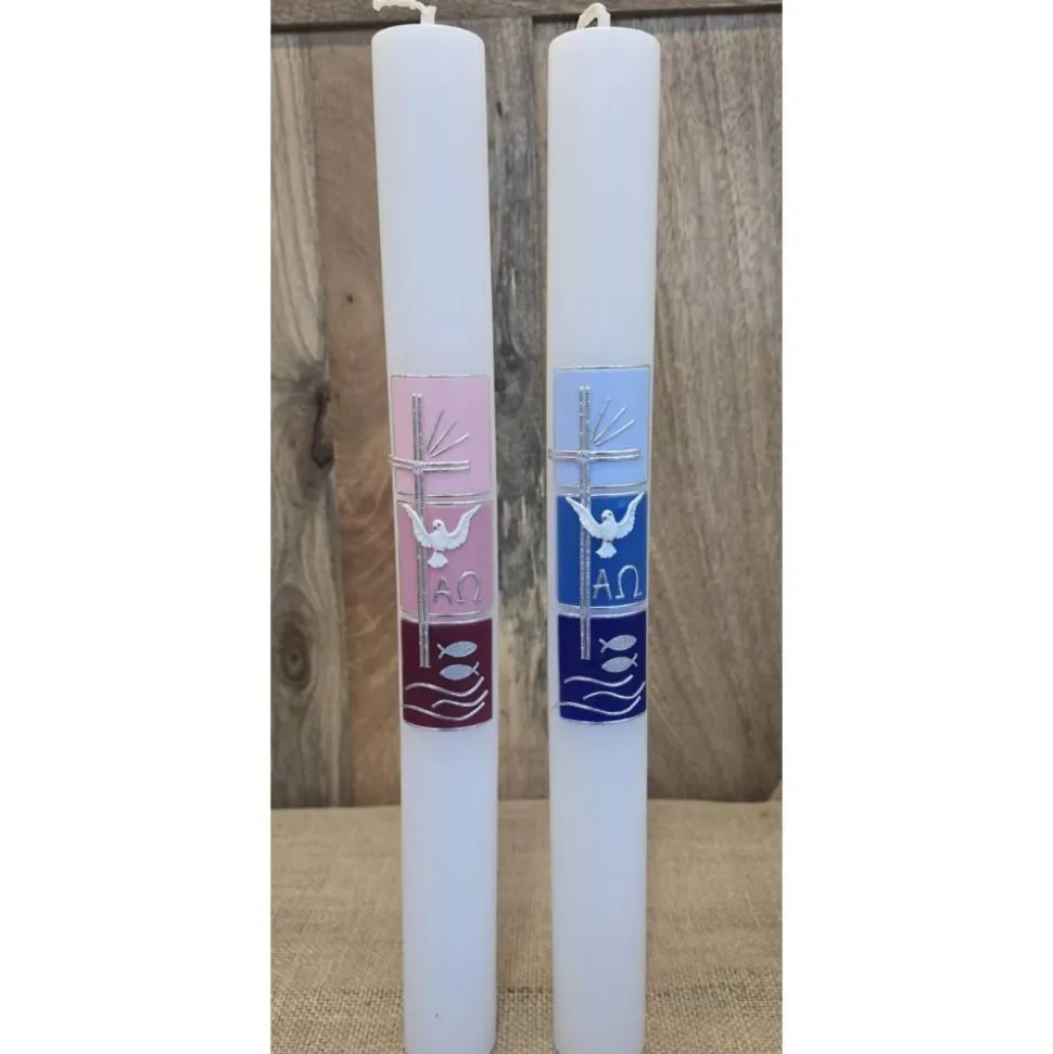 Taufkerze 40×4 –  „Silber“ in verschiedenen Farbtönen
