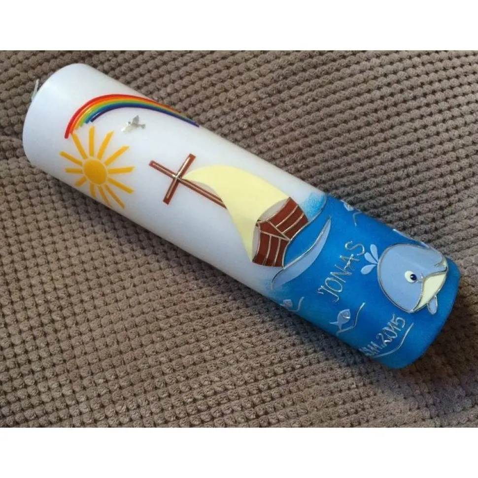 Taufkerze Boot – Arche – Wal mit hochwertigen Wachsverzierungen