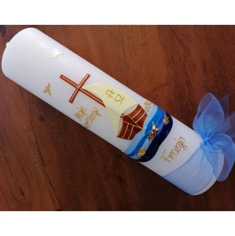 Taufkerze Boot – Arche – mit hochwertigen Wachsverzierungen