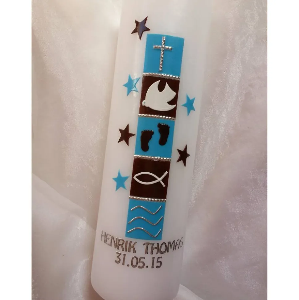 Die Taufkerze ist 25cm hoch und hat einen Durchmesser von 6cm