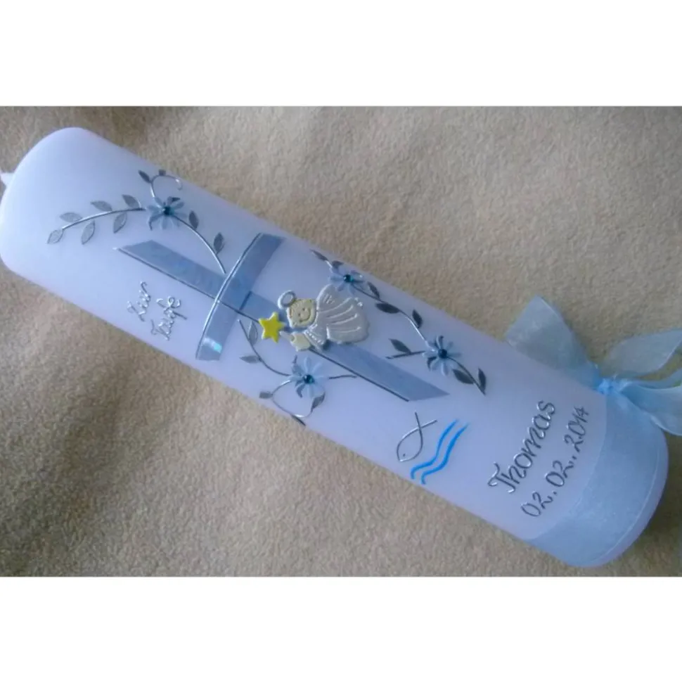 Die Verzierung auf der Kerze wird in liebevoller Handarbeit für Sie erstellt.