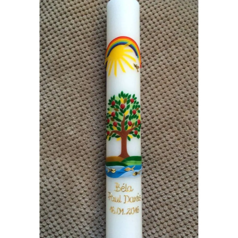 Die Taufkerze Lebensbaum hat die Größe 40 x 5 cm.