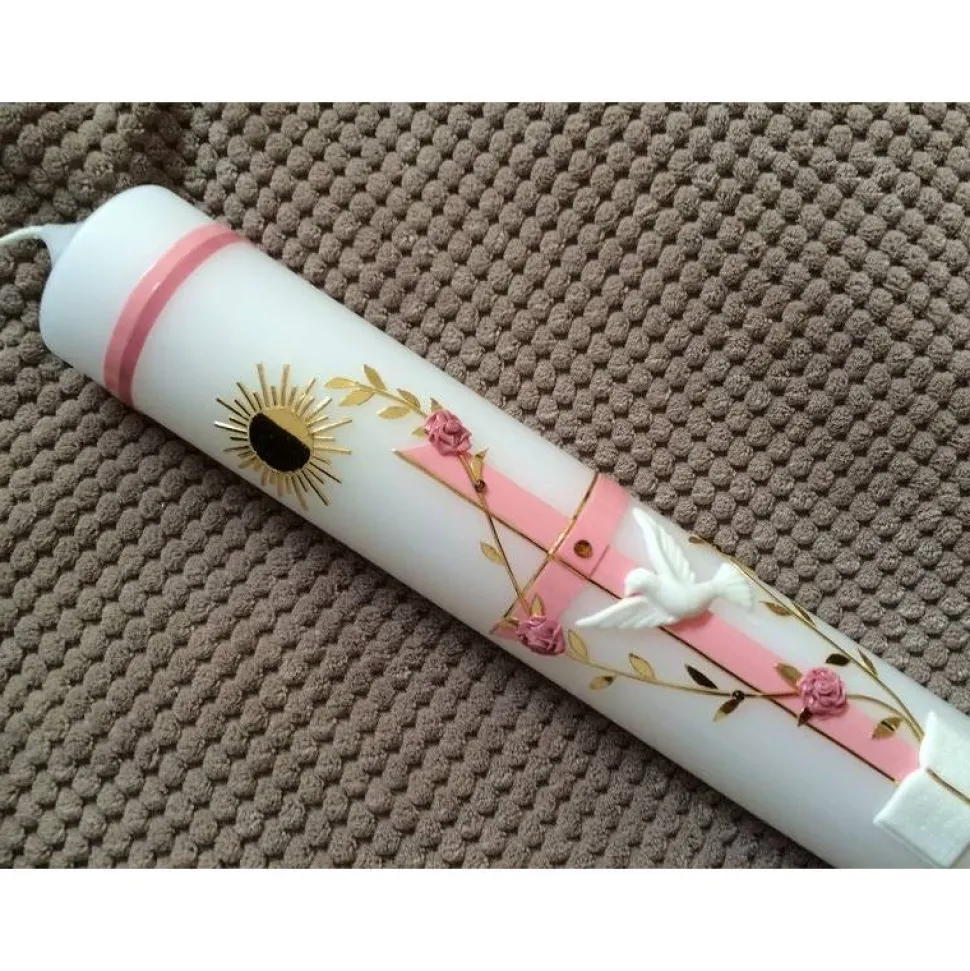 Die Taufkerze / Kommunionkerze hat die Größe 40 x 5 cm.