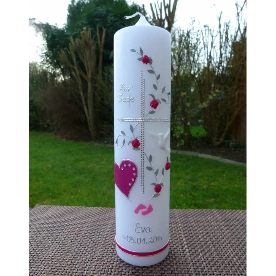 Die Verzierung auf der Kerze wird von mir in liebevoller Handarbeit für Sie erstellt.