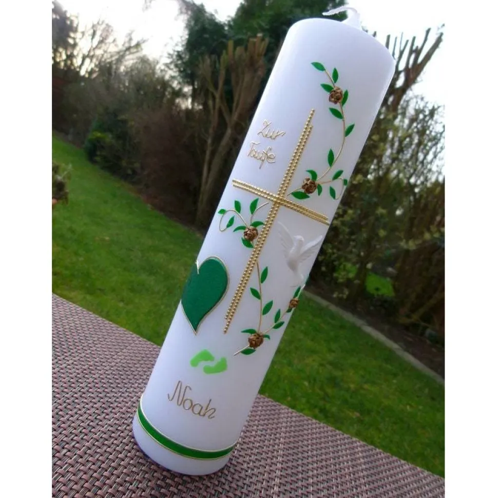 Taufkerze Kreuz mit hochwertigen Wachsverzierungen