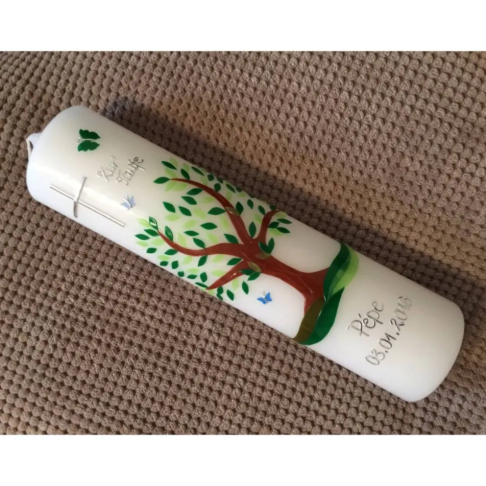 Taufkerze Lebensbaum mit hochwertigen Wachsverzierungen