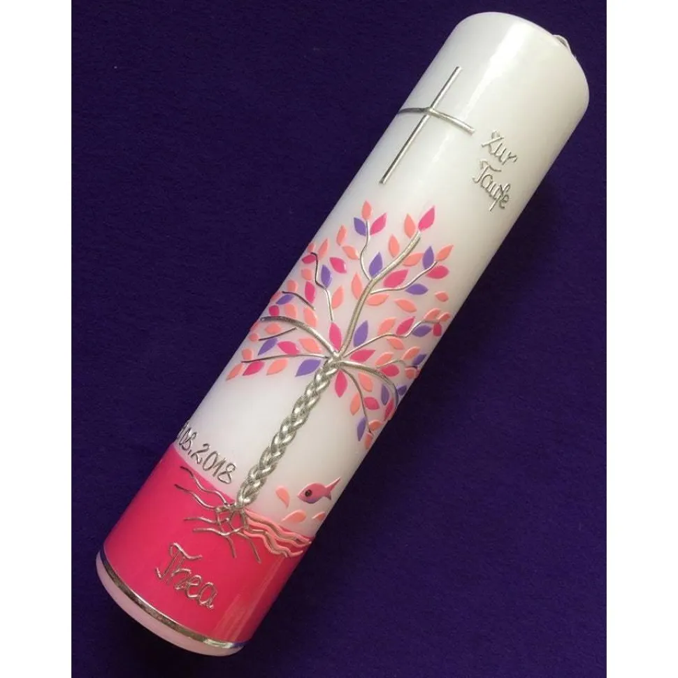 Taufkerze Lebensbaum Mädchen oder Jungen, inkl. Beschriftung, Farbwünsche möglich