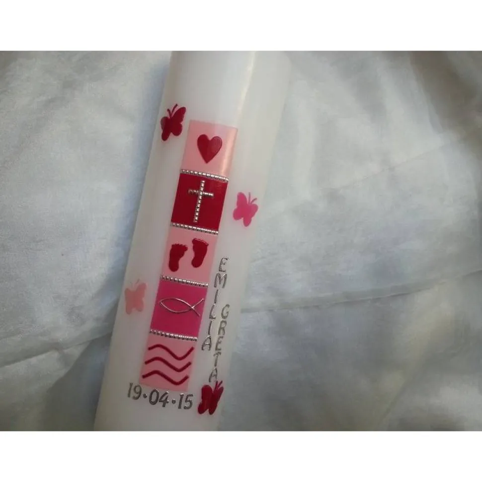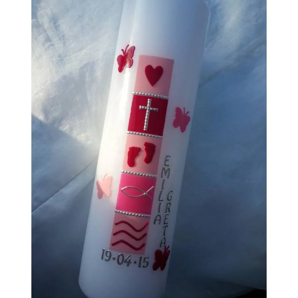 das Motiv dieser Taufkerze wird aus Wachs gefertigt