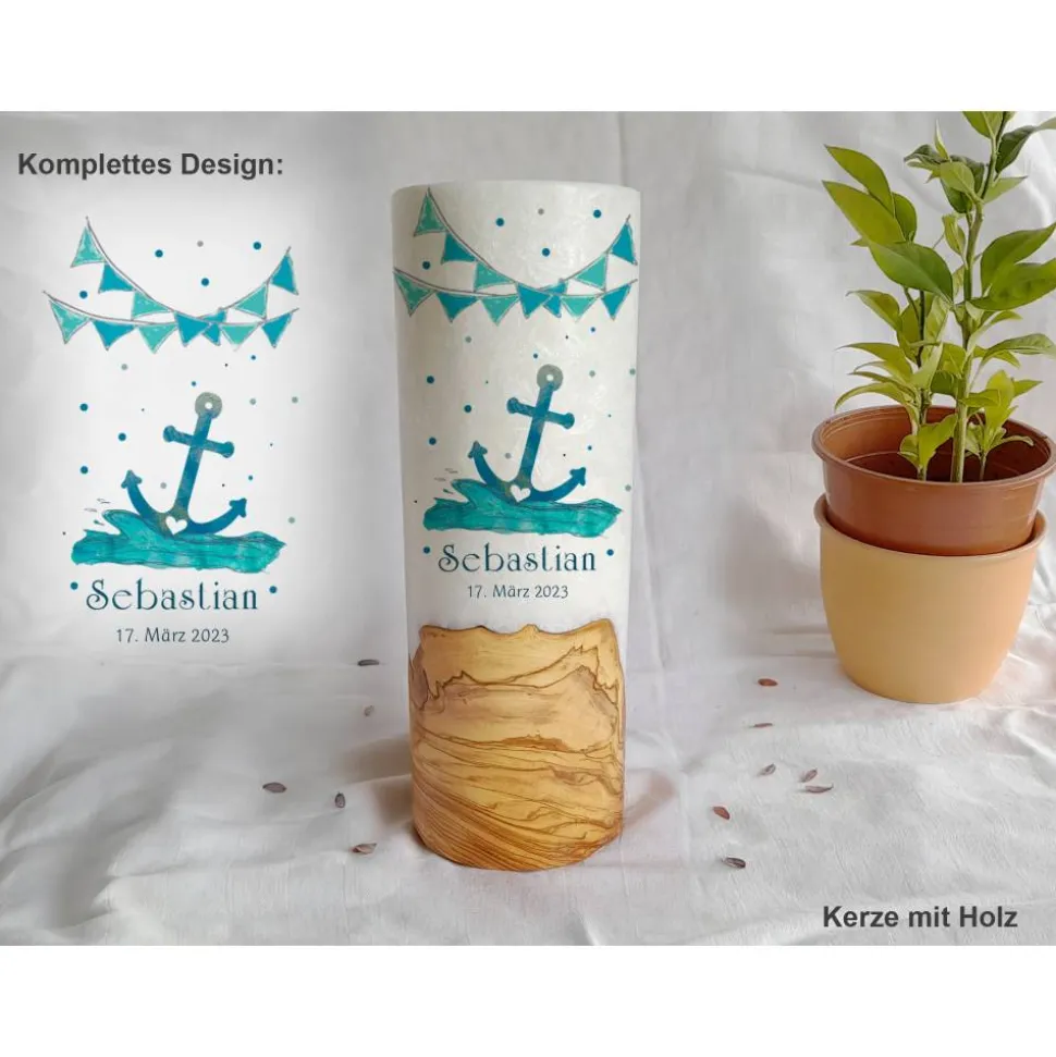 Die Kerze wird ohne Dekoration (Band, Holzscheibe etc.) geliefert.