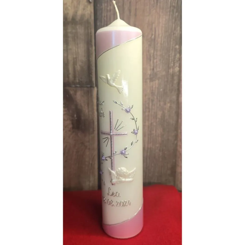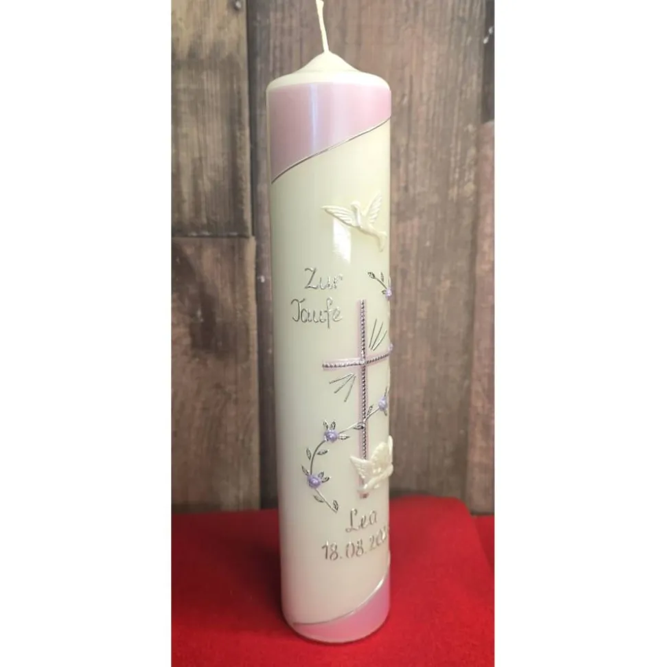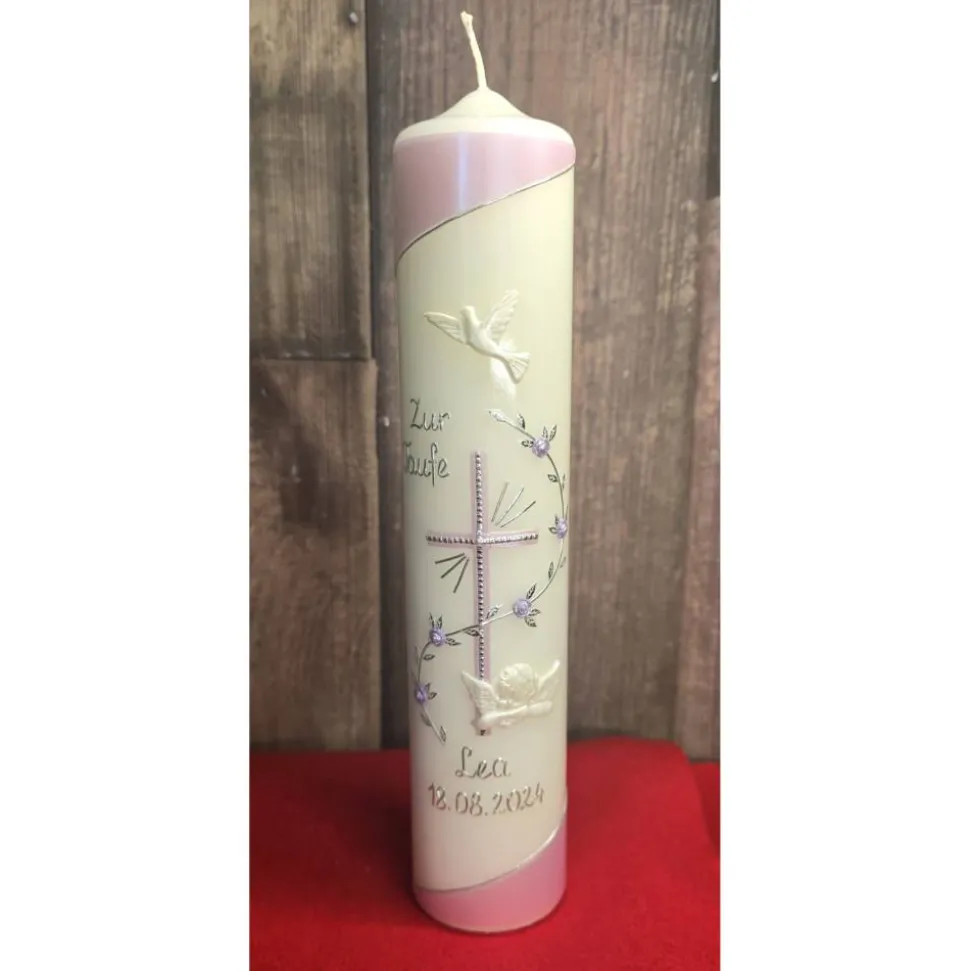 Bitte bei der Bestellung unbedingt angeben ob der Schriftzug – ZUR TAUFE – auf die Kerze angebracht werden soll.