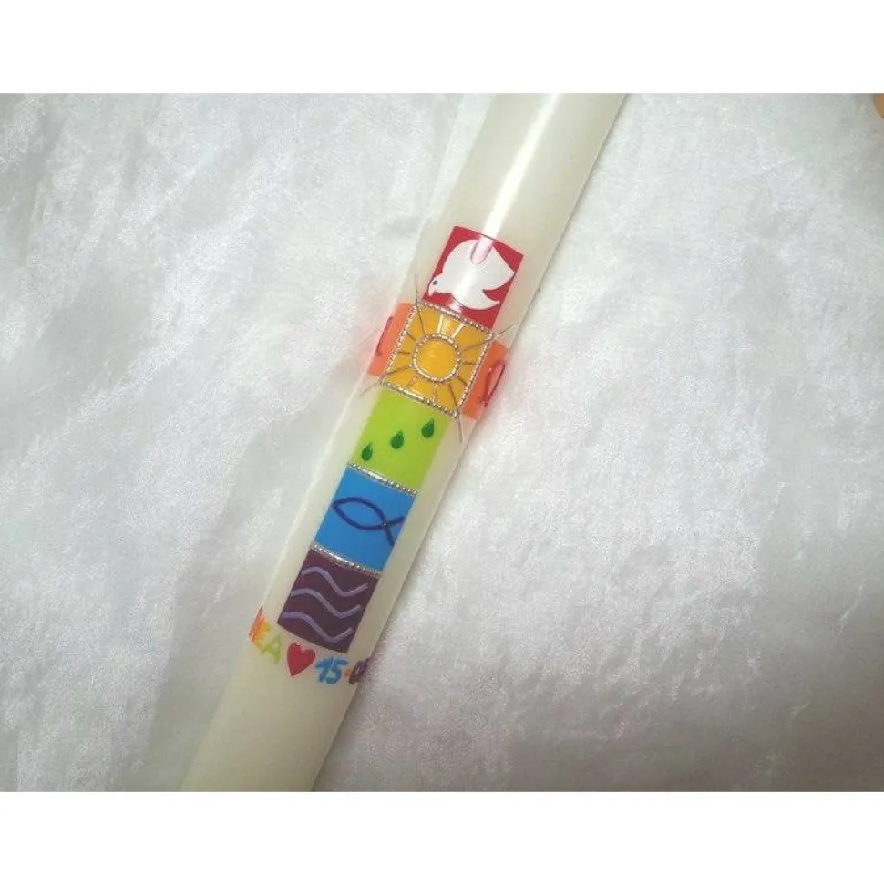Der Regenbogen ist folglich ein sehr starkes Taufsymbol, welches auf Taufkerzen Verwendung findet. Er steht für die Nähe zwischen Gott und Mensch und den immerwährenden Frieden und unseren Bund miteinander.