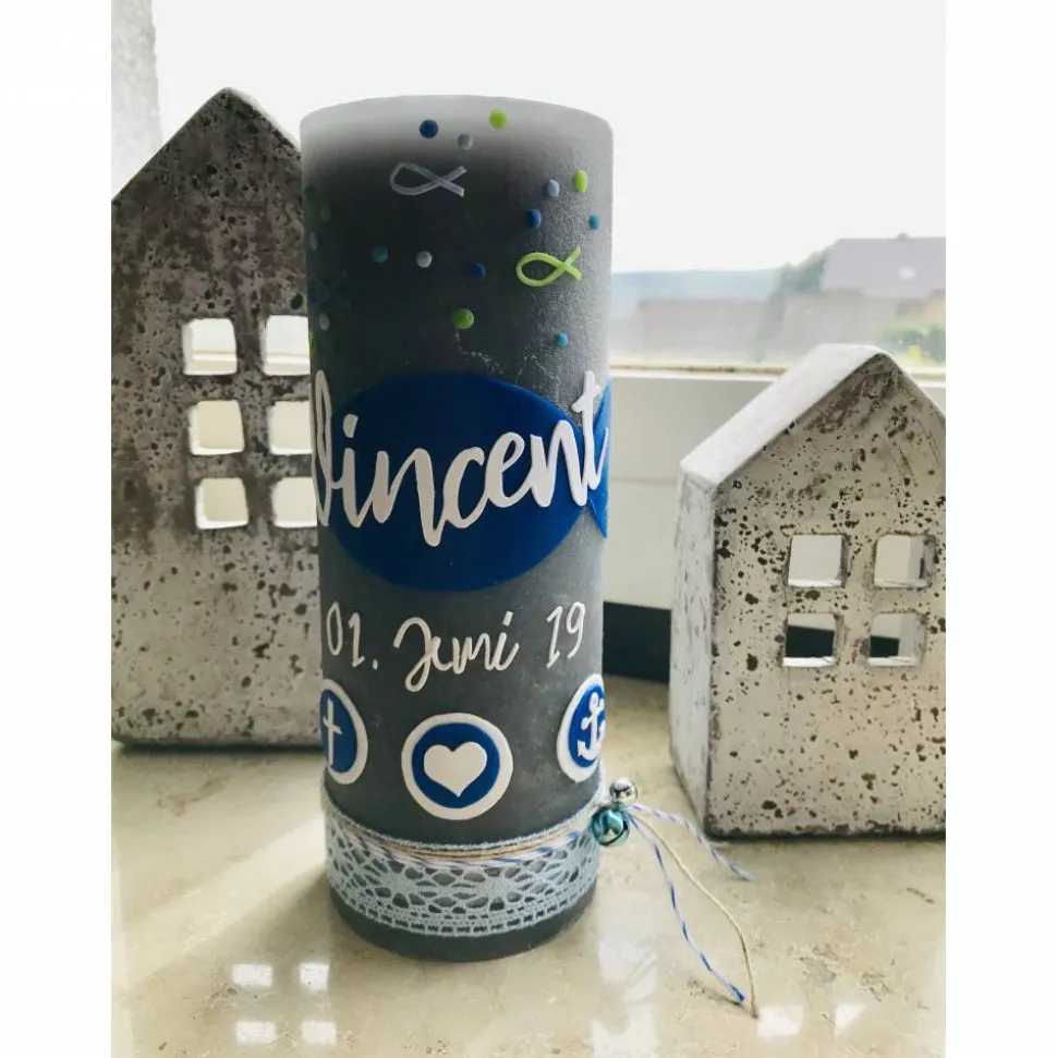 Liebevoll von Hand gestaltet, verziehrt mit Name und Tauf- oder Geburtsdatum.