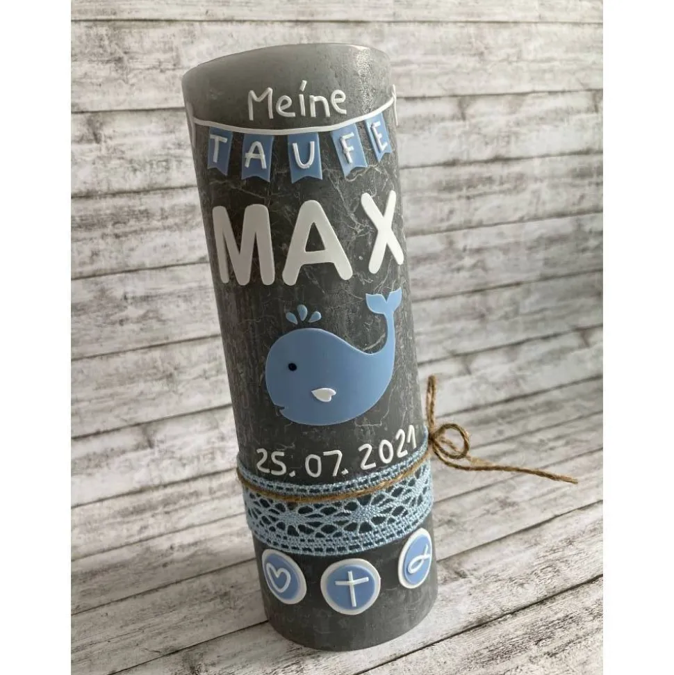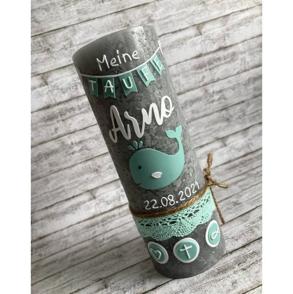 Liebevoll von Hand gestaltet, verziehrt mit Name und Tauf- oder Geburtsdatum.
