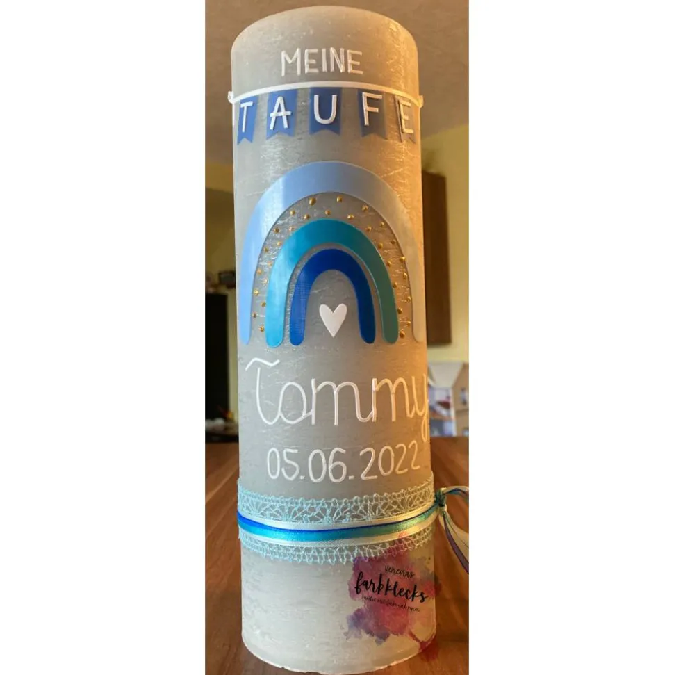 Liebevoll von Hand gestaltet , verziehrt mit Name und Tauf- oder Geburtsdatum.