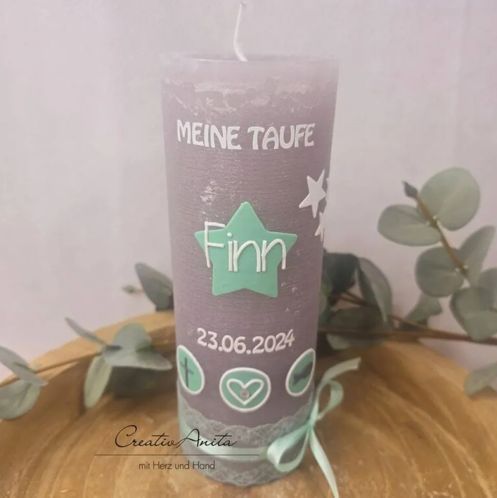 Wunderschöne handgefertigte Rustikkerze in grau.