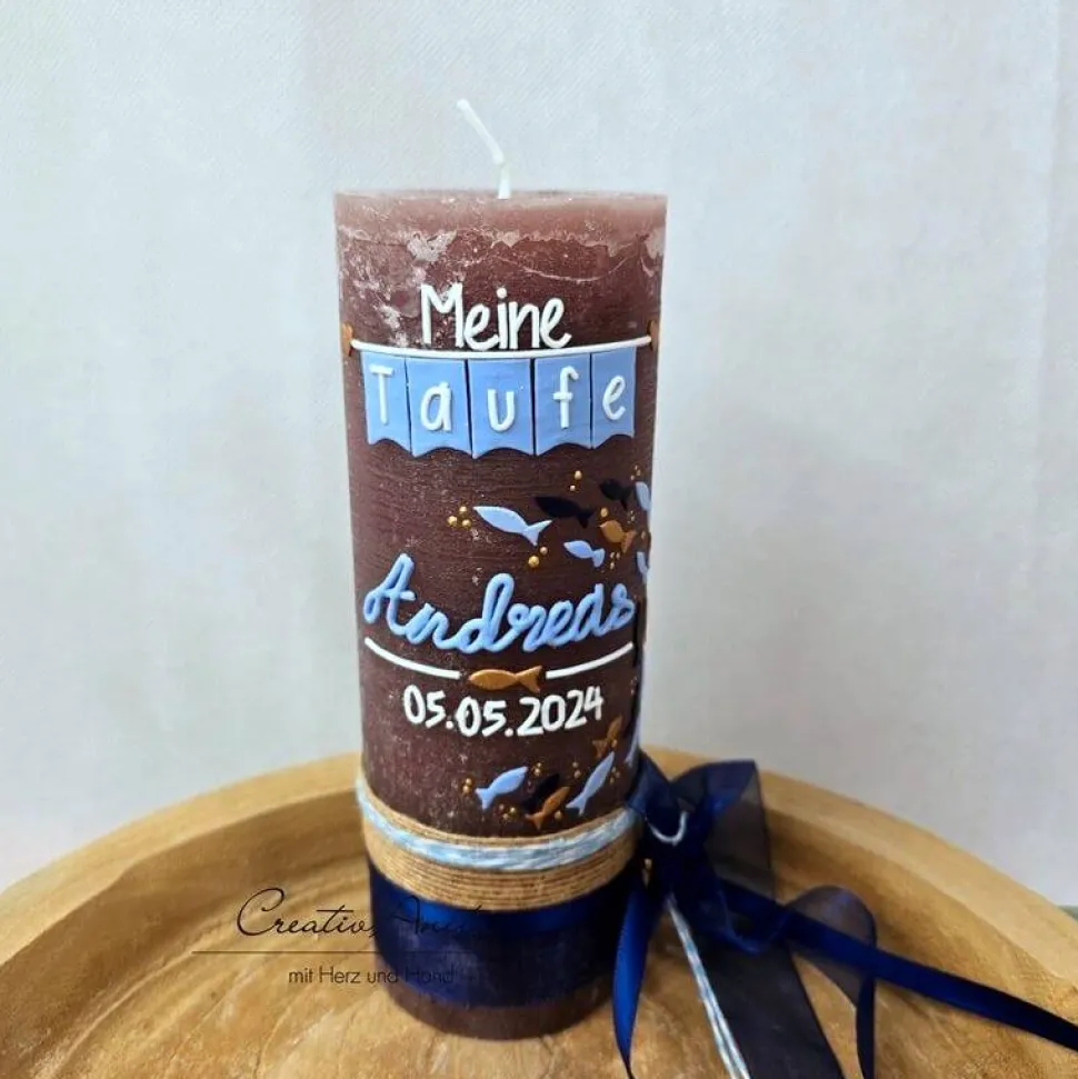 Tolle Taufkerze – Rustikkerze in Schlamm – Taupe – Braun!