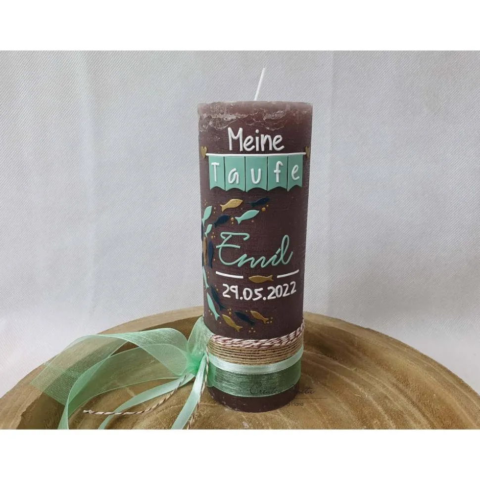 Tolle Taufkerze – Rustikkerze in Schlamm – Taupe – Braun!