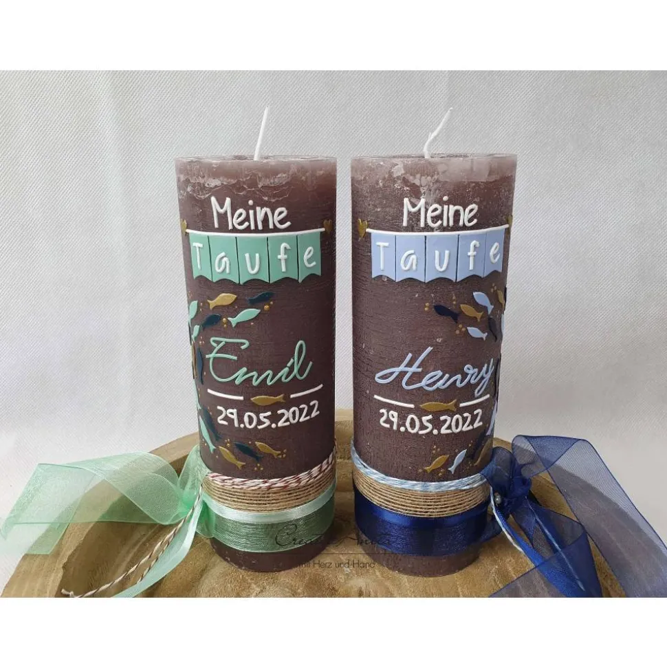Gerne personalisieren wir die Kerze auch mit dem Namen des Täuflings und das Taufdatum.