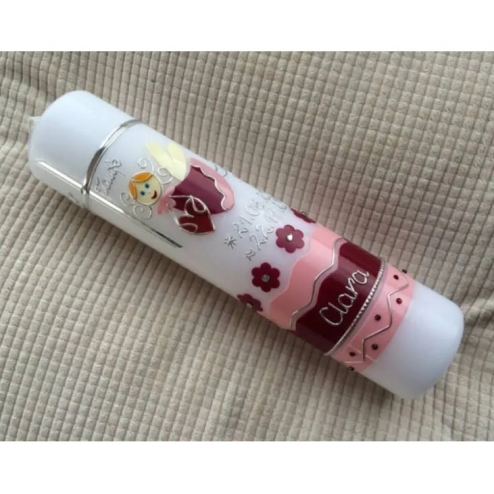 Taufkerze Schutzengel mit hochwertigen Wachsverzierungen