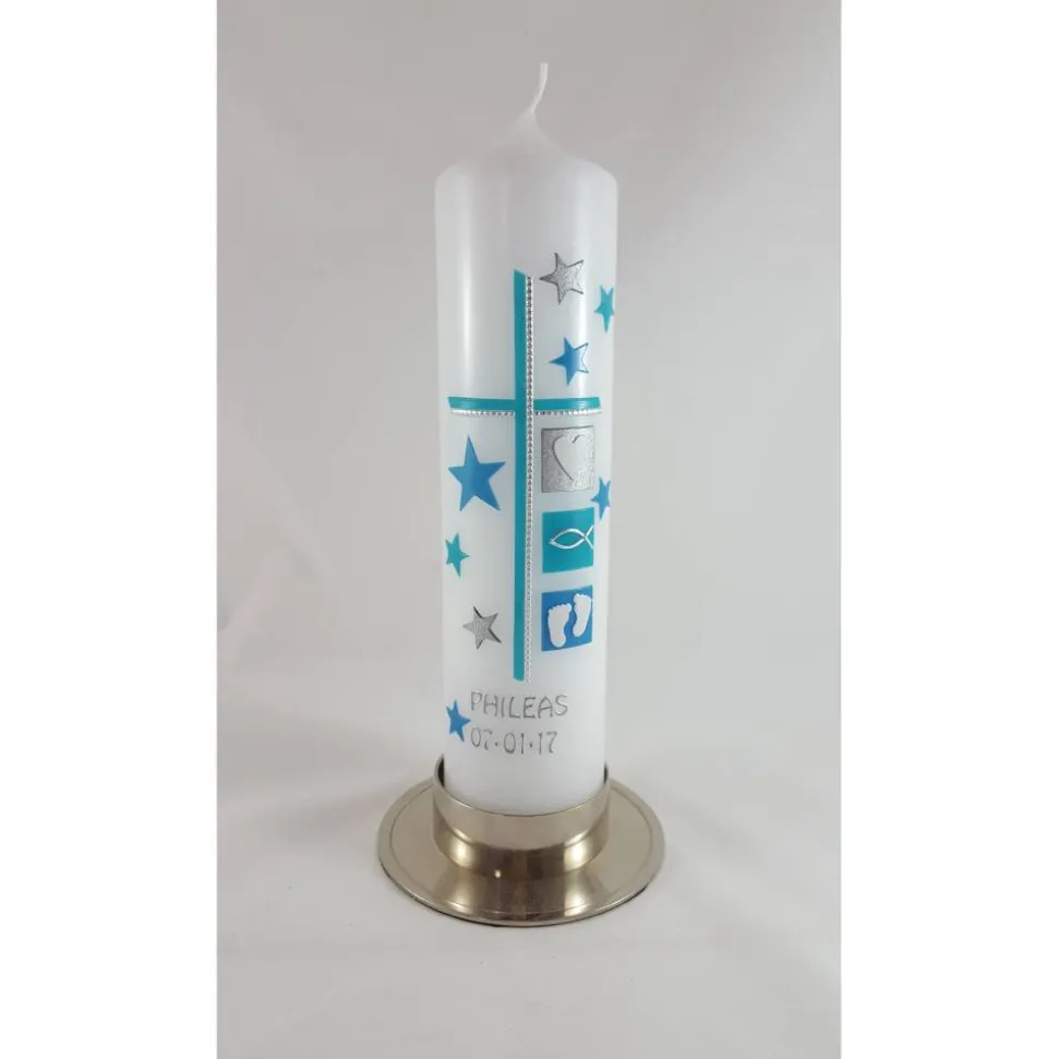 Diese Taufkerze können Sie optional mit oder ohne Kerzenhalter bestellen.