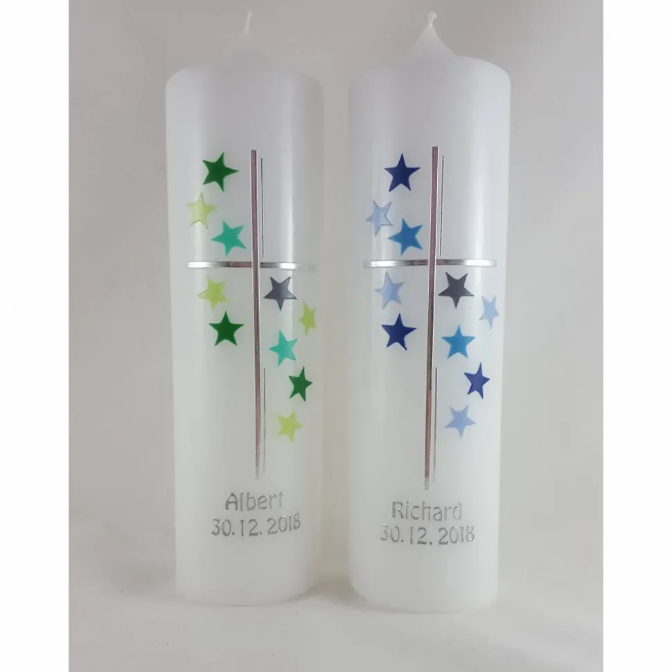 schlichte Taufkerzen in der Größe 25 x 6 Zentimeter (andere Größen jederzeit möglich, bitte kontaktieren Sie uns)