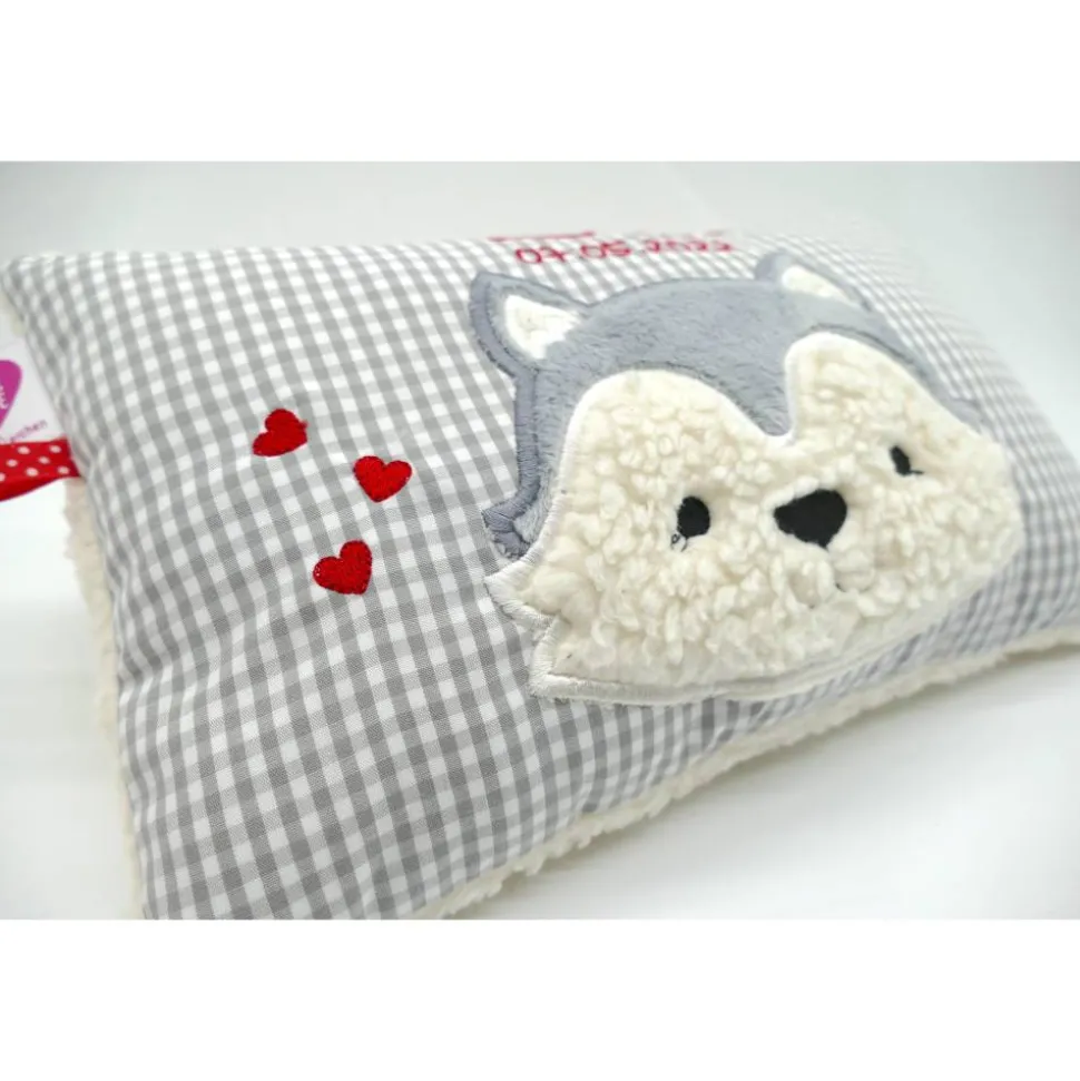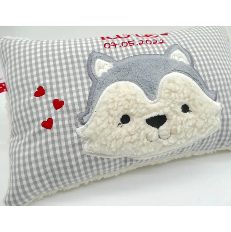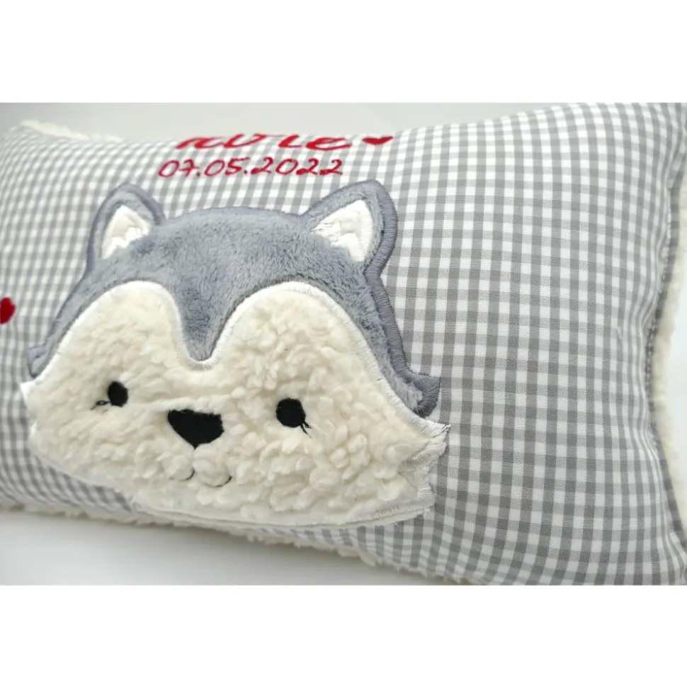 Taufkissen Kuschelkissen Kindergartenkissen Geburtsgeschenk Husky – Kleiner Wolf