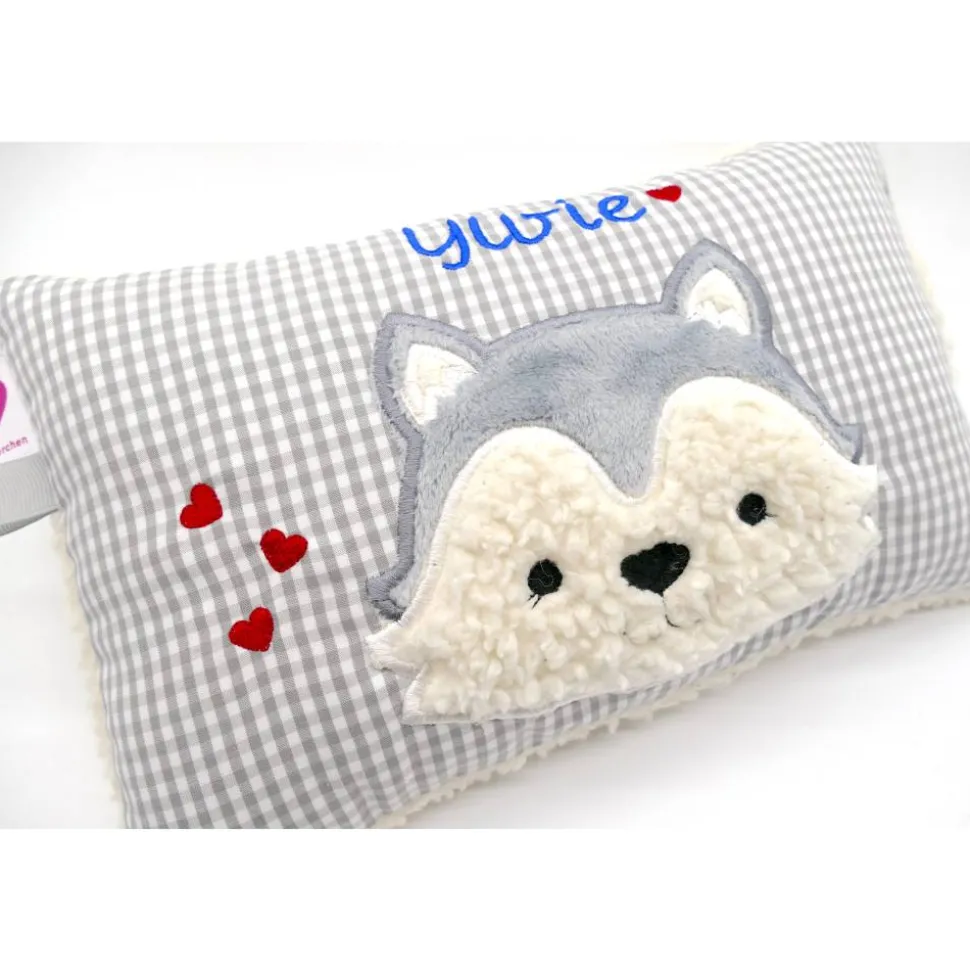 Taufkissen Kuschelkissen Kindergartenkissen Geburtsgeschenk Husky – Kleiner Wolf