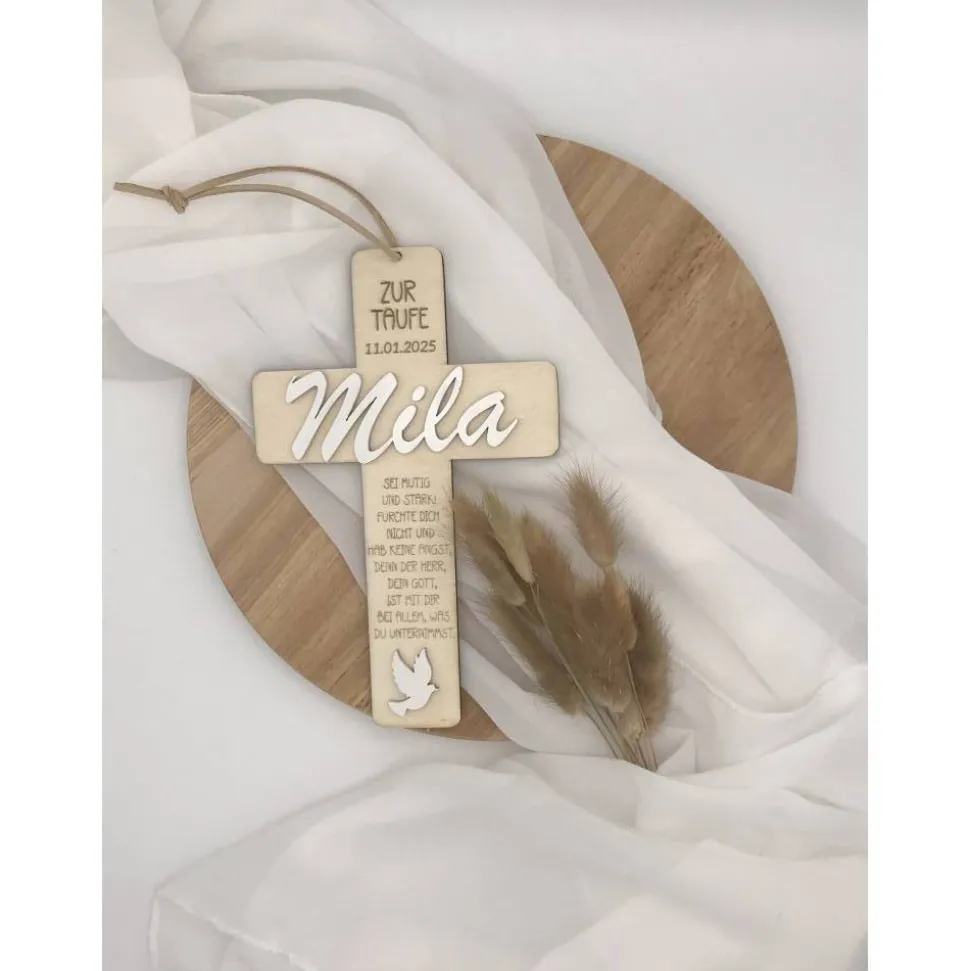 Handgefertigt aus hochwertigem Holz, symbolisch und nachhaltig. Ein zeitloses Andenken für besondere Anlässe. Entdecke jetzt personalisierte Holzkreuze, die Herzen berühren! ✝️