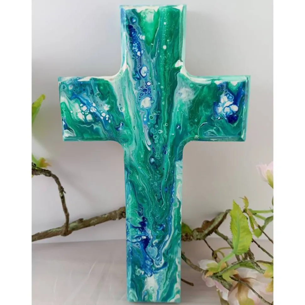 Taufkreuz ist ein sehr persönliches Geschenk, z.B. vom Taufpaten, den Großeltern oder den Eltern selbst.Jedes Taufkreuz wird mit viel Liebe zum Detail mit Acrylfarbe Fließtechnik angefertigt; es kann am Tauftag mit in die Kirche genommen und geweiht werden.