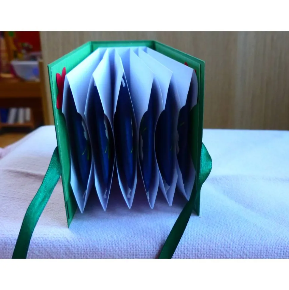 Das Büchlein ist aus einen grünen Fotokarton und mit bedruckten Motivkarton gearbeitet.