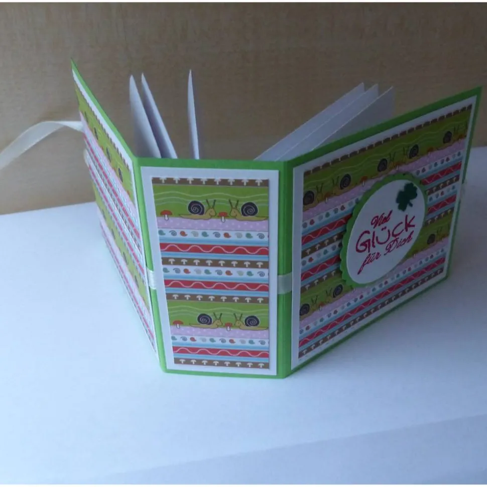 Das Büchlein ist aus einen hellgrünen Fotokarton und mit bedruckten Motivkarton gearbeitet.
