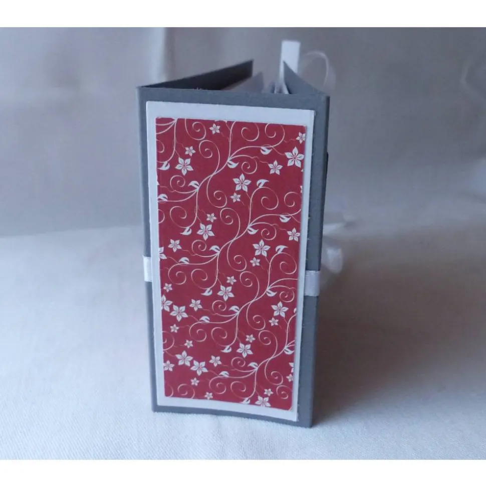 Das Büchlein ist aus einem grauen Karton,weißen Tonpapier und bedruckten Motivkarton gearbeitet,