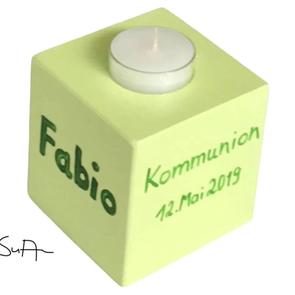 Jeder Kerzenwürfel wird nach dem Kauf individuell für Sie bemalt. Die Teelichthalter können mit Namen,Daten, christlichem oder persönlichem Vers personalisiert werden. Farbwünsche werden gerne berücksichtigt.