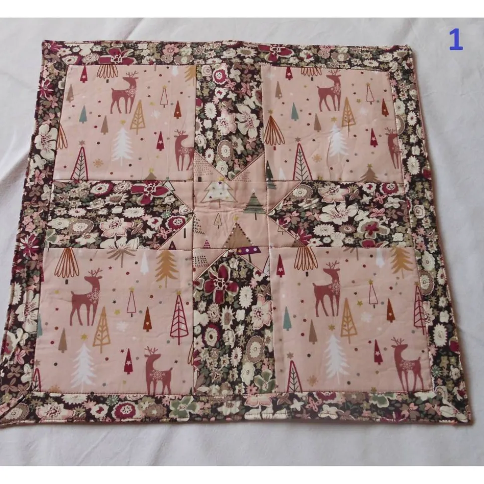 Verleihe deinem Tisch zur Advents- und Weihnachtszeit eine festliche Note! Diese Mitteldecke, ca. 40x40cm, wird in liebevoller Patchworkarbeit gefertigt und mit einem passenden Unistoff hinterlegt.