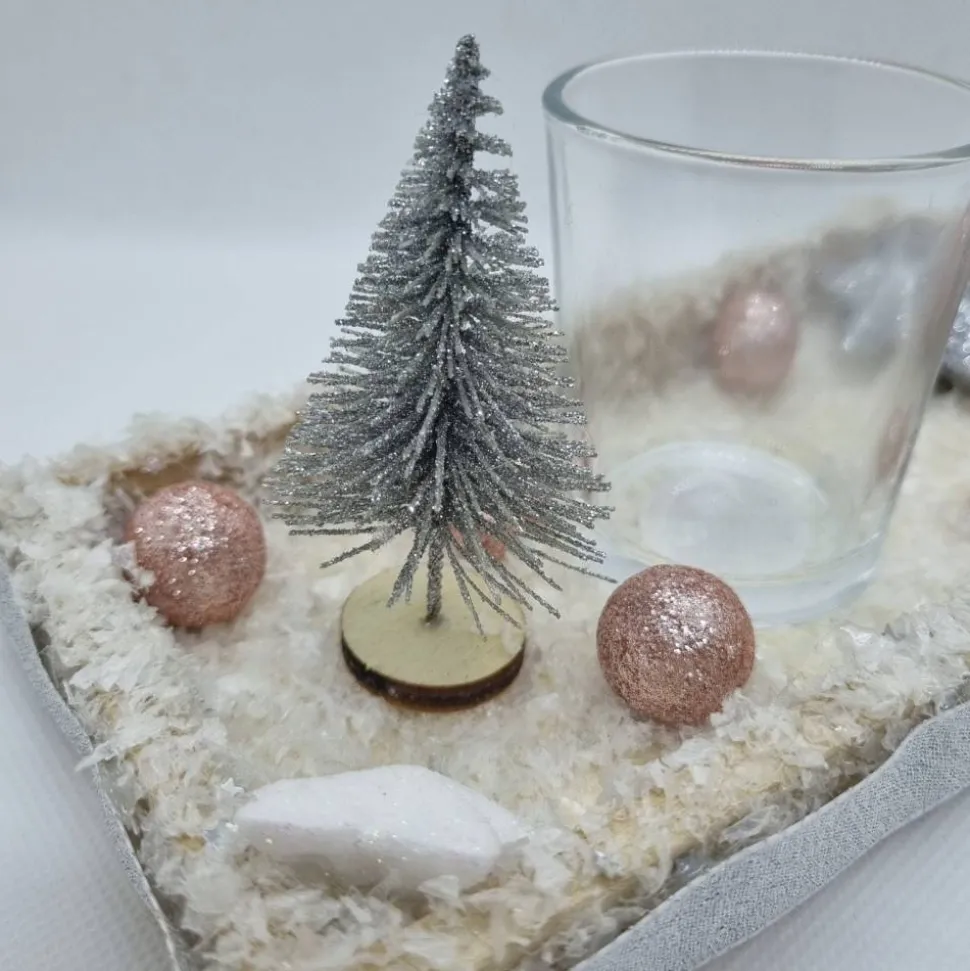 -Dekoschnee (geklebt). Zusätzlicher loser Dekoschnee wird zum Auffüllen der Lücken mitgeliefert.