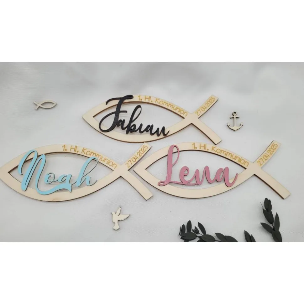 Fisch aus Holz mit Namen und Datum