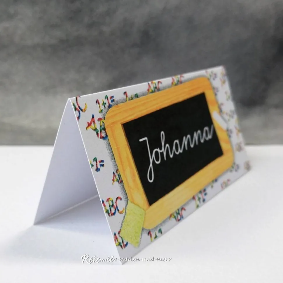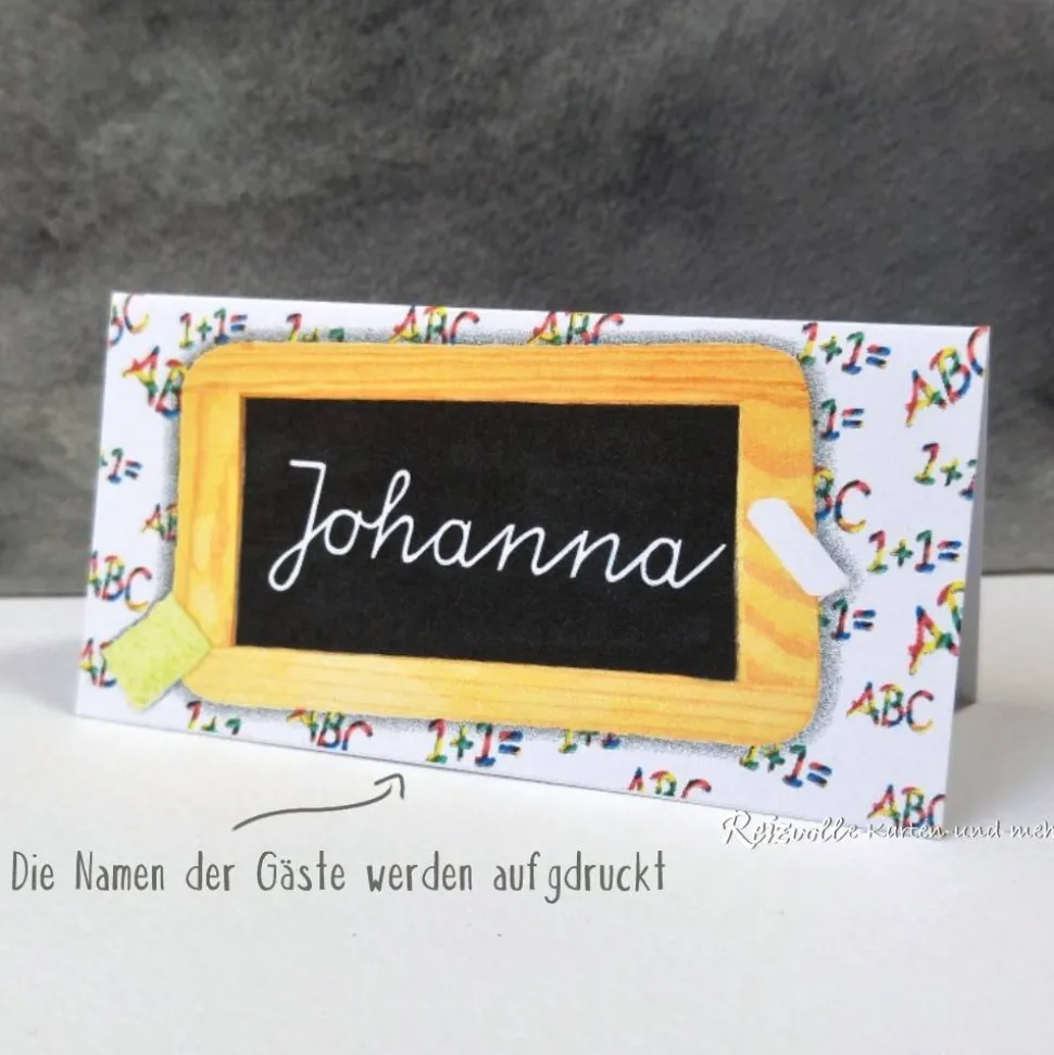 Gestalte deine Einschulungsfeier einzigartig mit personalisierten Tischkarten im Schiefertafel-Design!