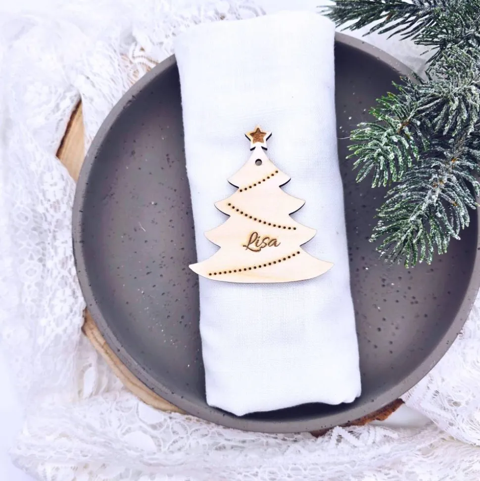 Mach die Weihnachtsfeier mit diesen schönen personalisierbaren Tischkarten aus Pappelsperrholz besonders. Diese vielseitigen verwendbaren Namensschilder eignen sich ideal als Platzkarten für das Weihnachtsfest, als dekorative Geschenkanhänger oder einfach als stilvolle Deko für deine Weihnachtsfeier. Jedes Stück wird sorgfältig graviert.