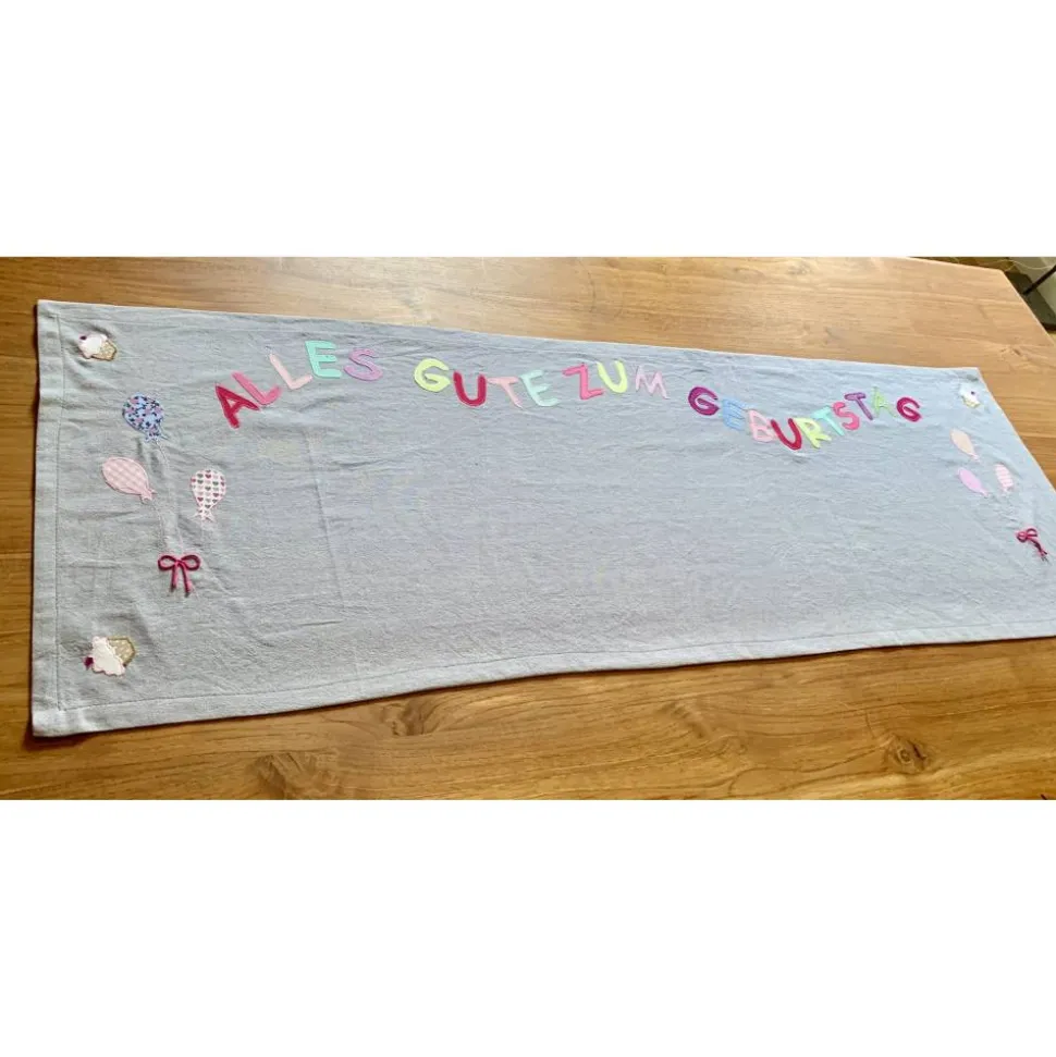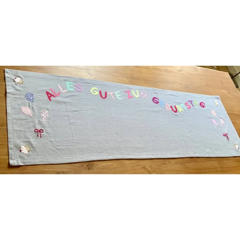 mit aufwendigen, zahlreichen Applikationen, die in mühevoller Kleinarbeit mit der Maschine in einer engen Zick-Zack-Naht ausfranssicher & wachmaschinenfest aufgenäht wurden.