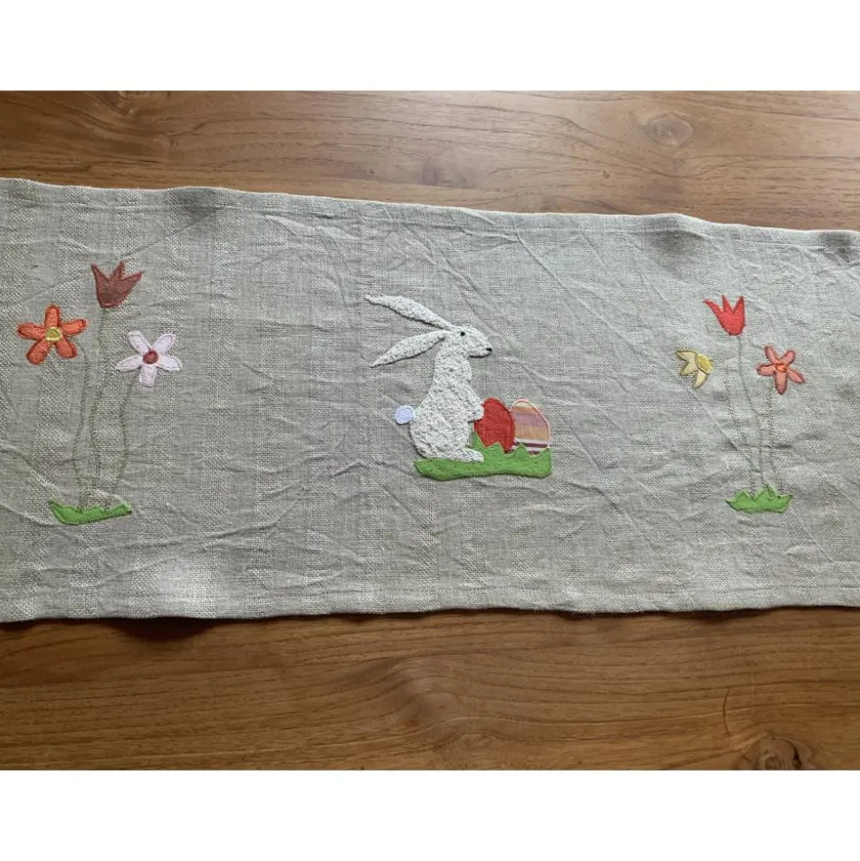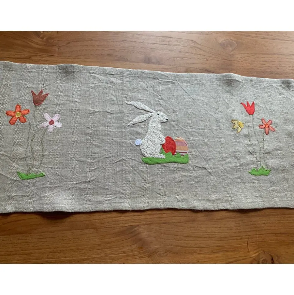 Tischläufer für die Osterzeit und den Frühling mit aufwendigen, zahlreichen Applikationen,