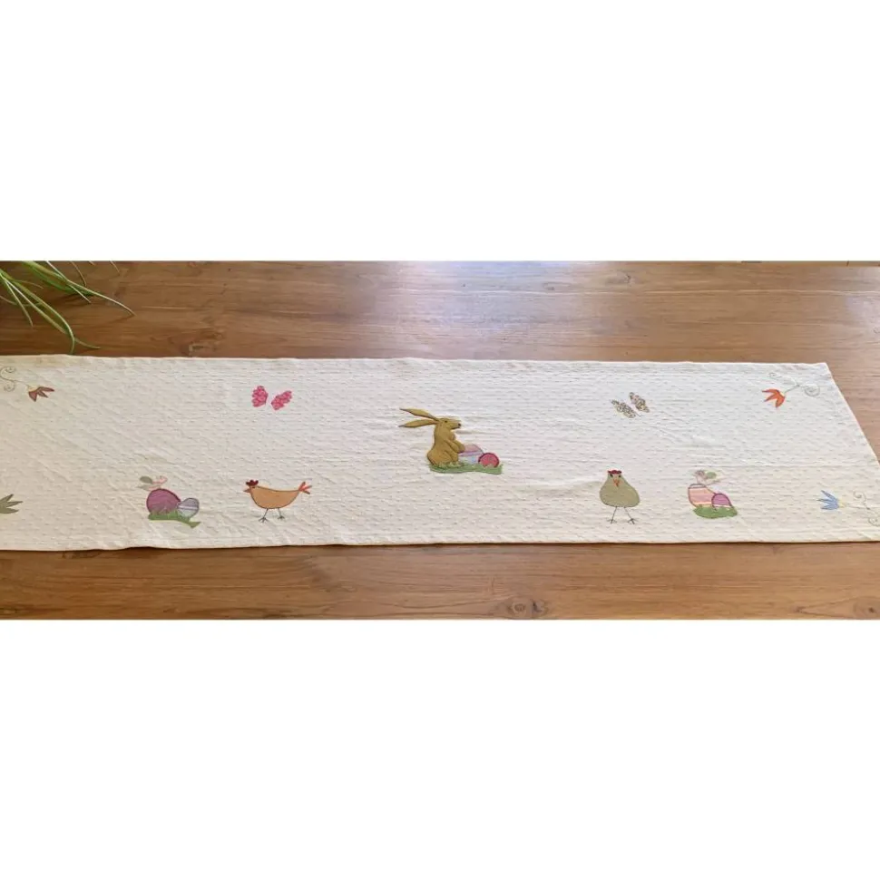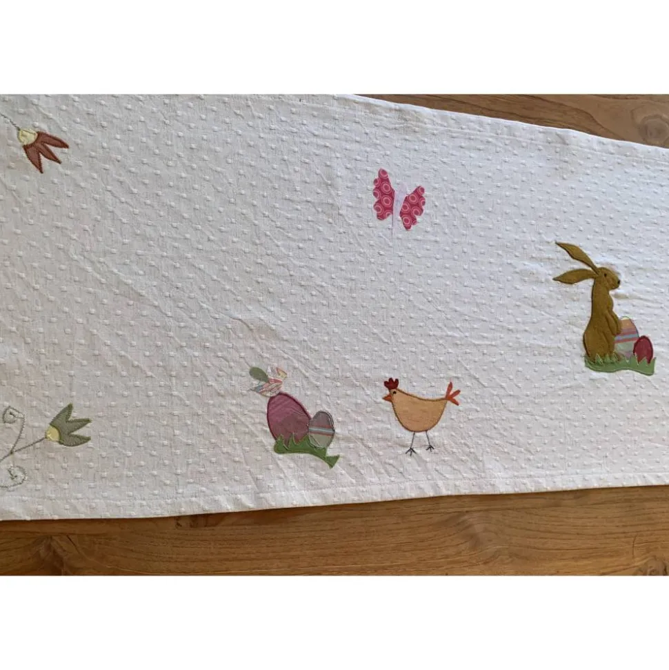 Tischläufer für die Osterzeit und den Frühling mit aufwendigen, zahlreichen Applikationen,