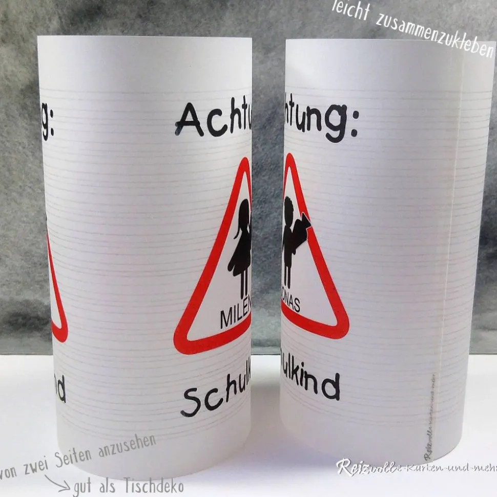 Entdecke die perfekte Deko für den Schulanfang: Die Lichthülle „Achtung“ aus hochwertigem Transparentpapier ist die ideale Tischdekoration zur Einschulungsfeier für Mädchen und Jungen. Sie wird auf Transparentpapier gedruckt und anschließend fixiert, sodass der Druck wasser- und lichtbeständig ist.