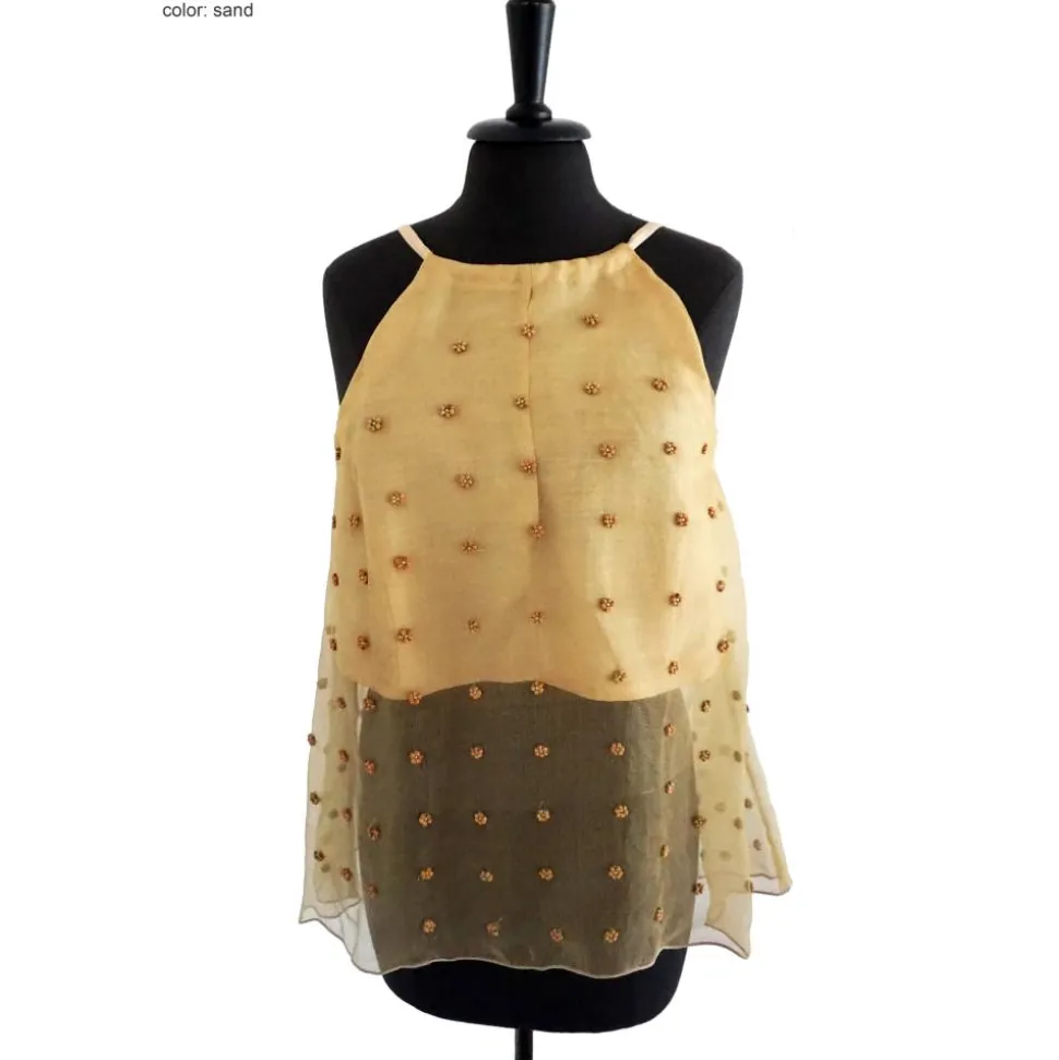 oberes Teil aus mit Perlen besticktem Seidenstoff (Stoff von einer Schweizer Textildesignerin.)